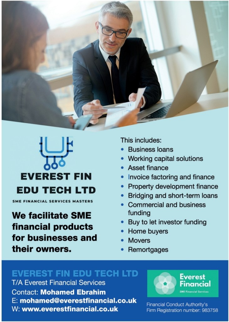 Mohamed, is currently based in Birmingham, West Midlands, England, United Kingdom and is a Co-founder, CEO and Director of a Start-up Everest Fin Edu Tech Limited. He utilises his training and experience of over 25 years to find funding solutions for individuals, businesses and property buyers, investors and developers especially for the SME'S.
