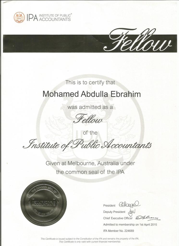FCPA Mohamed, is currently enrolled in the Doctoral Program of Business Administration at the Edinburgh Business School.