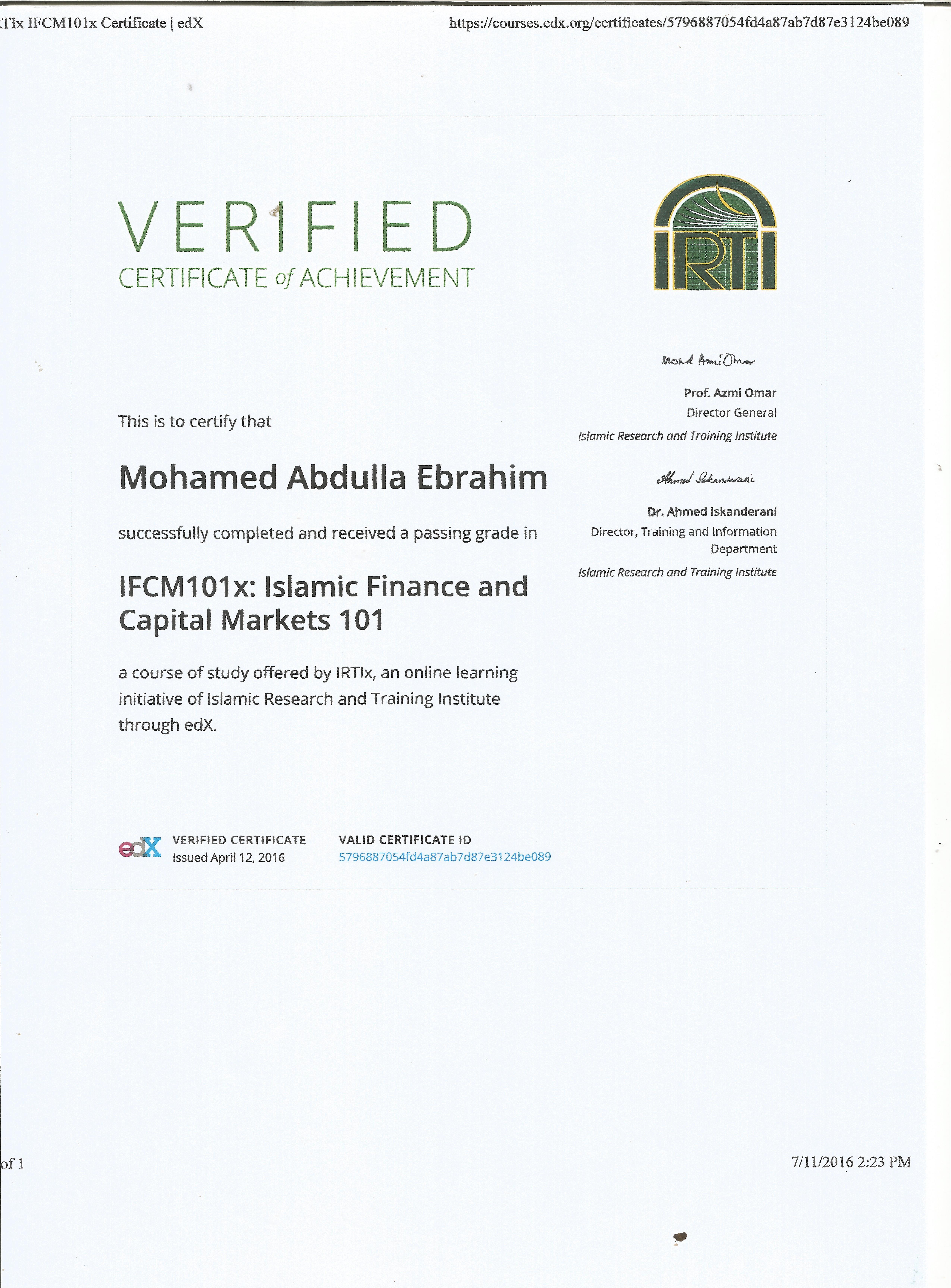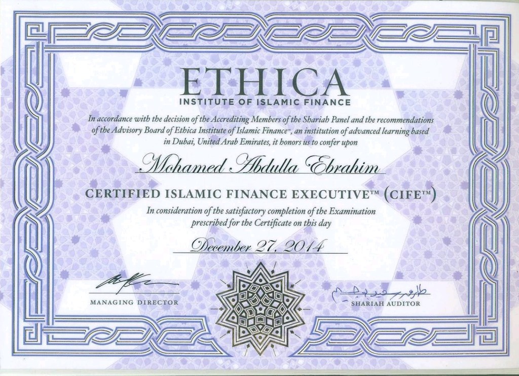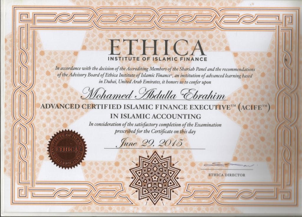 The Director Mohamed Ebrahim has extensive qualifications experience in accounting and finance of over 25 year’s, including in Islamic Sharia Compliant financial solutions.